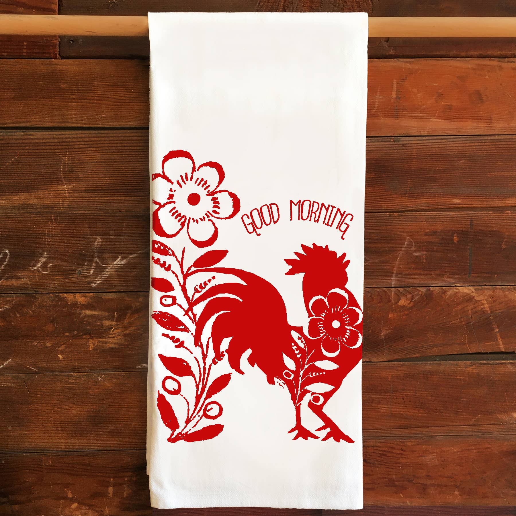 Flour Sack Tea Towel - Rooster Floral Good Morning