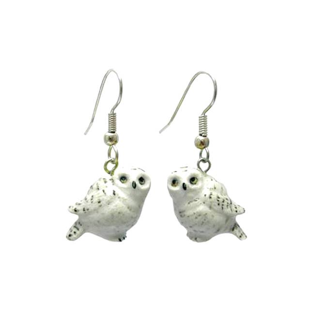 Earrings - Hand-Painted Porcelain - Snowy Owls
