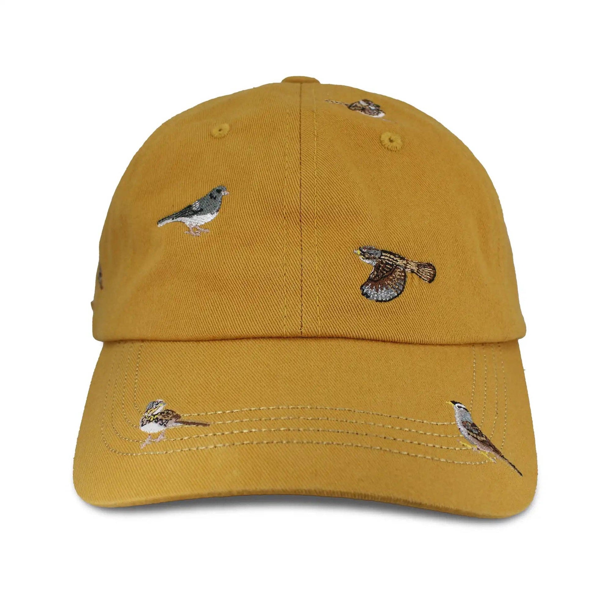 Get to know the sparrows singing and scratching around your backyard or park. This embroidered hat features six beloved sparrow species: White-throated, White-crowned, Song, Swamp, Savannah, and Dark-eyed Junco.