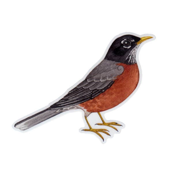 This sticker features an original watercolor painting of an American Robin by Florida artist Kate Dolamore. Made of durable vinyl and laminated to protect against scratches, rain, and sun. It measures 4" inches from head to tail and has a matte finish. It can be used on water bottles, laptops, cars, planners, mailboxes, etc.