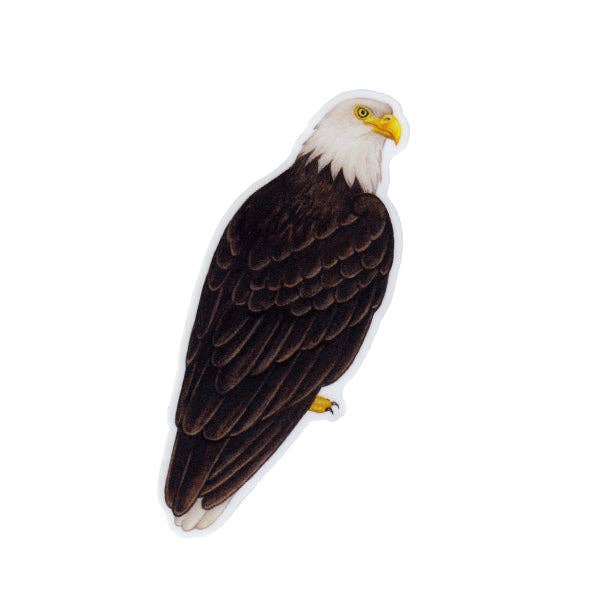 This sticker features an original watercolor painting of a Bald Eagle by Florida artist Kate Dolamore. Made of durable vinyl and laminated to protect against scratches, rain, and sun. It measures 4" inches from head to tail and has a matte finish. It can be used on water bottles, laptops, cars, planners, mailboxes, etc.