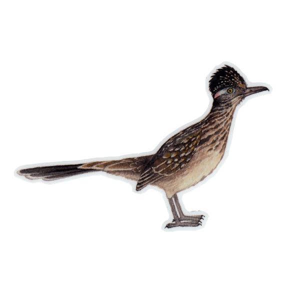 This sticker features an original watercolor painting of a Greater Roadrunner by Florida artist Kate Dolamore. Made of durable vinyl and laminated to protect against scratches, rain, and sun. It measures approximately 4" across and has a matte finish. It can be used on water bottles, laptops, cars, planners, mailboxes, etc.