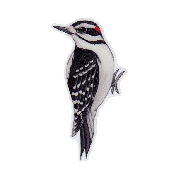 This sticker features an original watercolor painting of a Hairy Woodpecker by Florida artist Kate Dolamore. Made of durable vinyl and laminated to protect against scratches, rain, and sun. It measures approximately 3.65" tall and has a matte finish. It can be used on water bottles, laptops, cars, planners, mailboxes, etc.