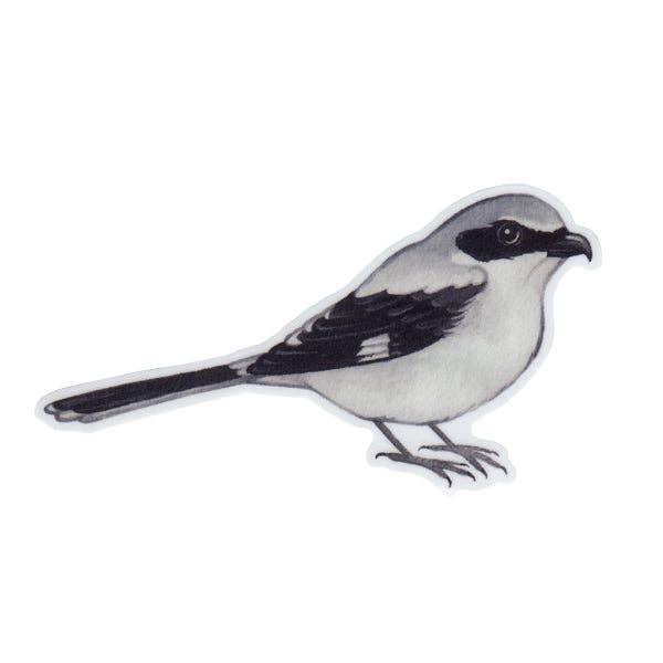 This sticker features an original watercolor painting of a Loggerhead Shrike by Florida artist Kate Dolamore. Made of durable vinyl and laminated to protect against scratches, rain, and sun. It measures approximately 3.57" across and has a matte finish. It can be used on water bottles, laptops, cars, planners, mailboxes, etc.