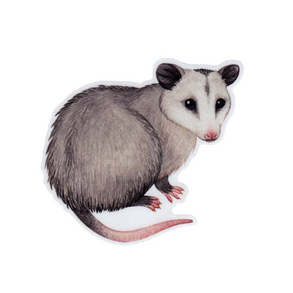 This sticker features an original watercolor painting of an Opossum by Florida artist Kate Dolamore. Made of durable vinyl and laminated to protect against scratches, rain, and sun. It measures approximately 3" and has a matte finish. It can be used on water bottles, laptops, cars, planners, mailboxes, etc.