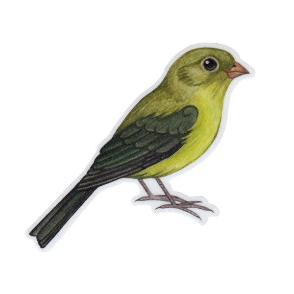 This sticker features an original watercolor painting of a female Painted Bunting by Florida artist Kate Dolamore. Made of durable vinyl and laminated to protect against scratches, rain, and sun. It measures approximately 3.75" from head to tail and has a matte finish. It can be used on water bottles, laptops, cars, planners, mailboxes, etc.