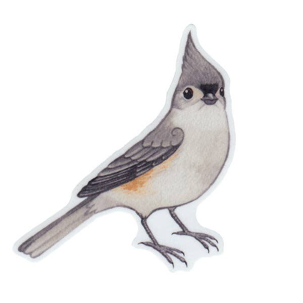 This sticker features an original watercolor painting of a Tufted Titmouse by Florida artist Kate Dolamore. Made of durable vinyl and laminated to protect against scratches, rain, and sun. It measures approximately 3.5"tall and has a matte finish. It can be used on water bottles, laptops, cars, planners, mailboxes, etc.