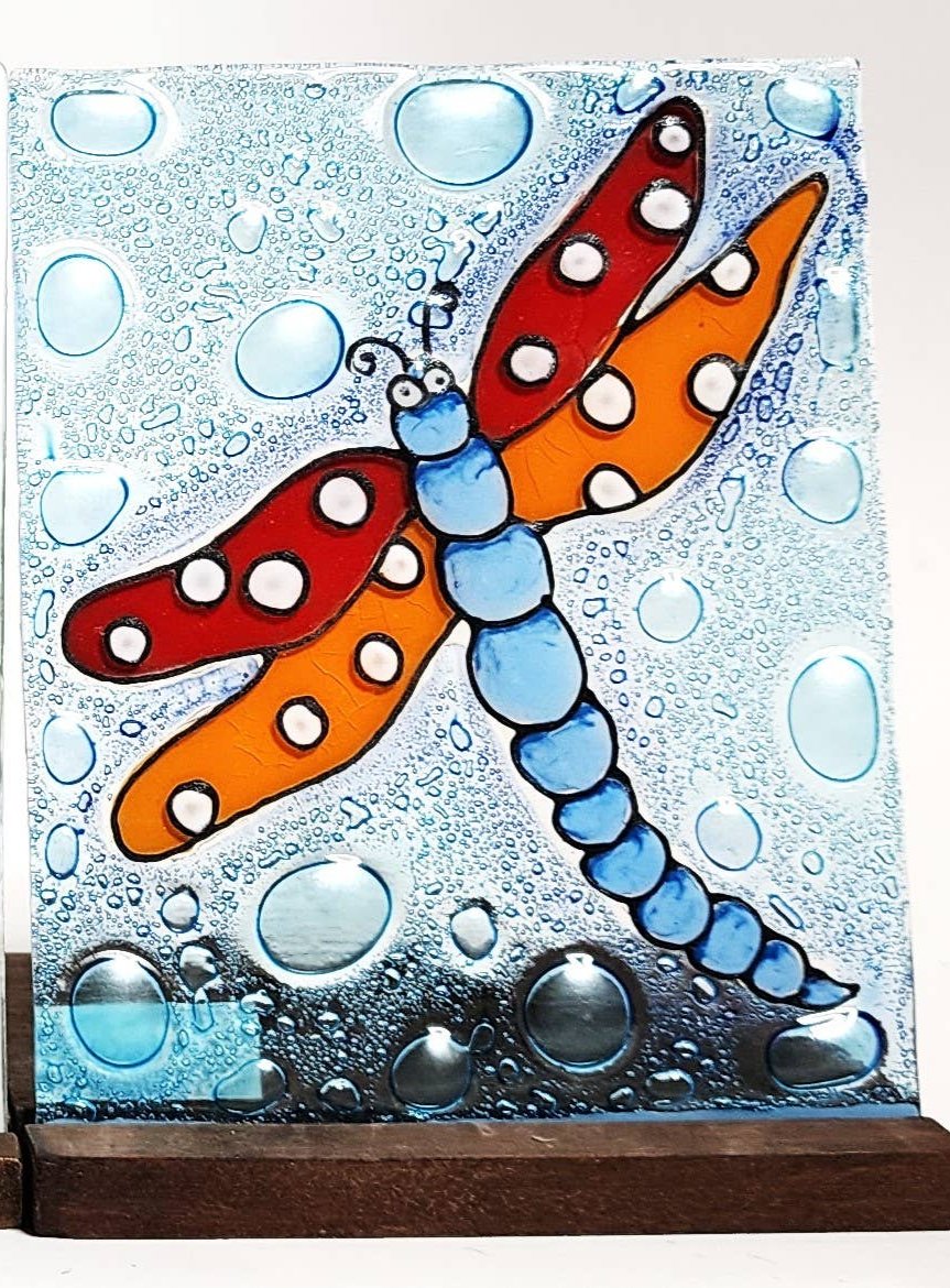 Tea Light Holder - Glass Art - Dragonfly (Orange)