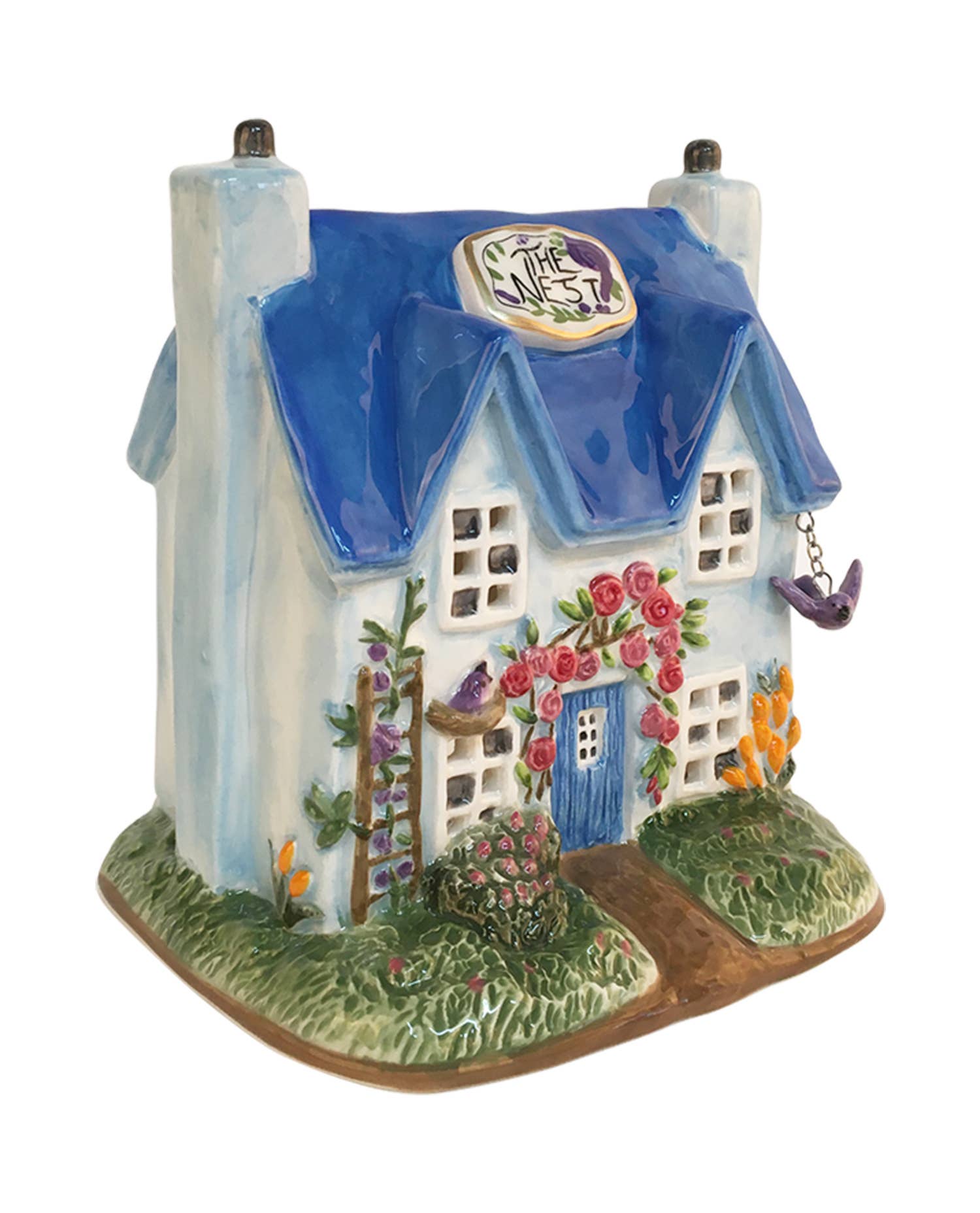 Welcome home to the Nest Candle House by Blue Sky Clayworks! This small blue cottage is bursting with vibrant flowers, creating a cozy and charming atmosphere. Make any room feel like a quaint and inviting paradise with this unique and playful addition.