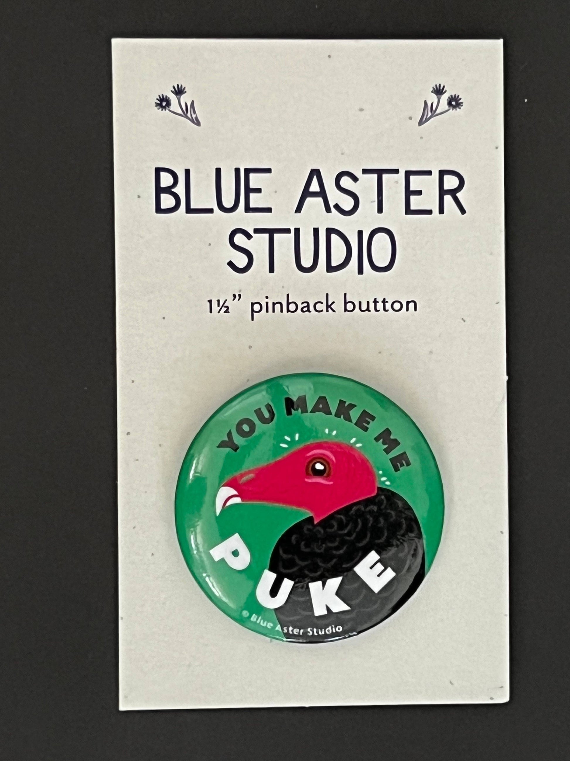 Pinback Button - Bird Vulture - "You Make Me Puke"
