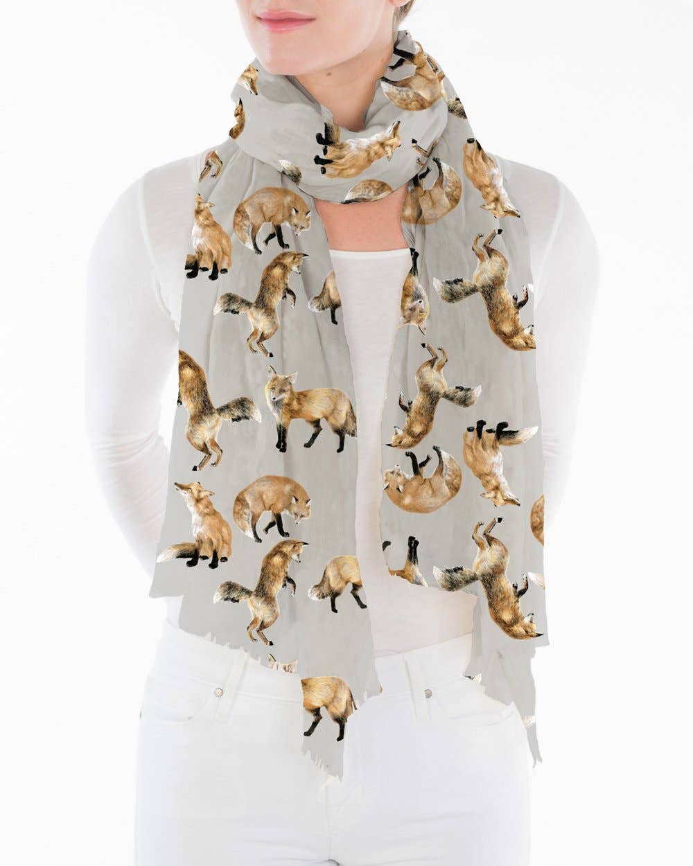 Scarf - Grey Fox | Art by Clare Dean (Polyester 33" x 72")