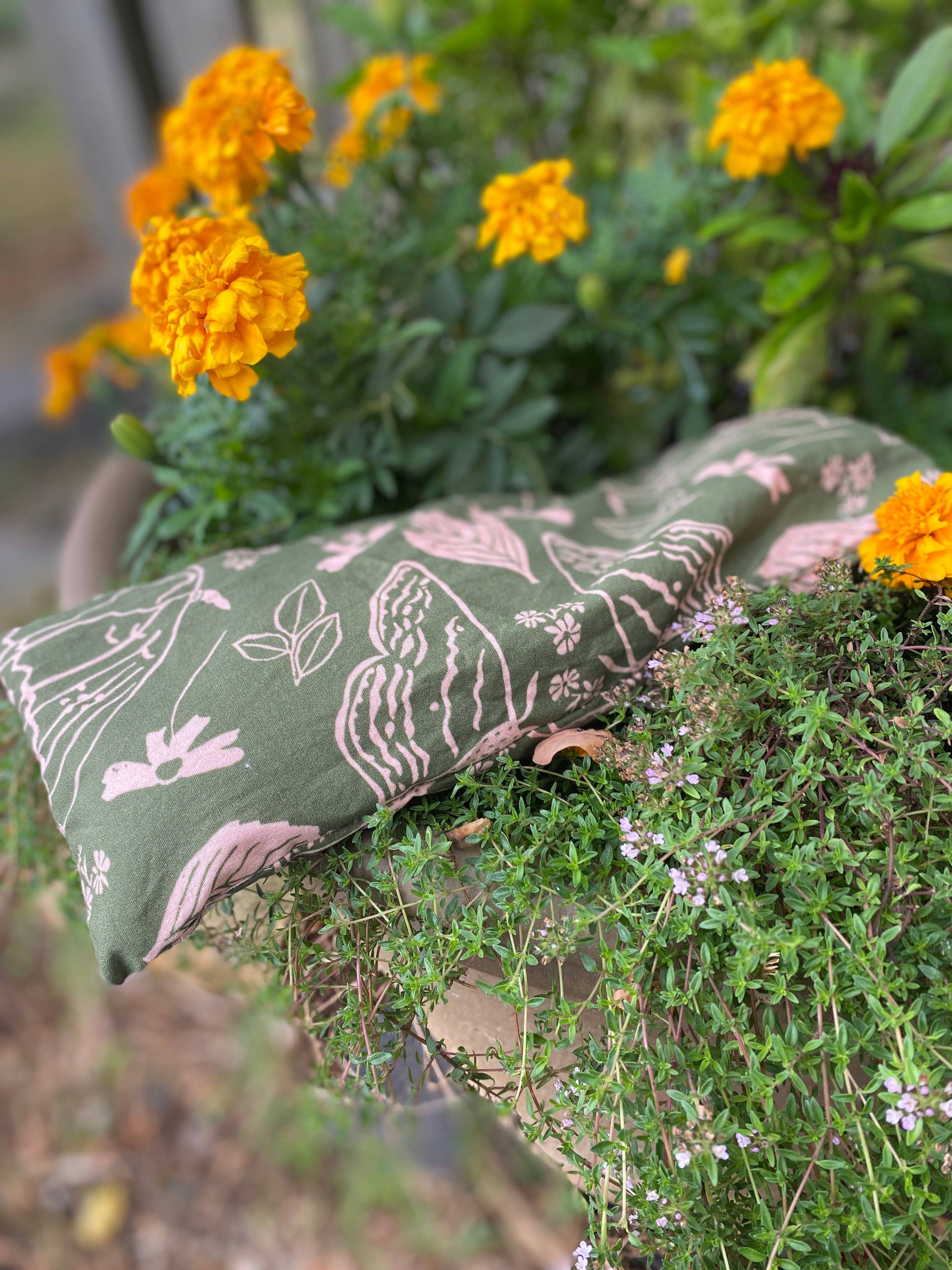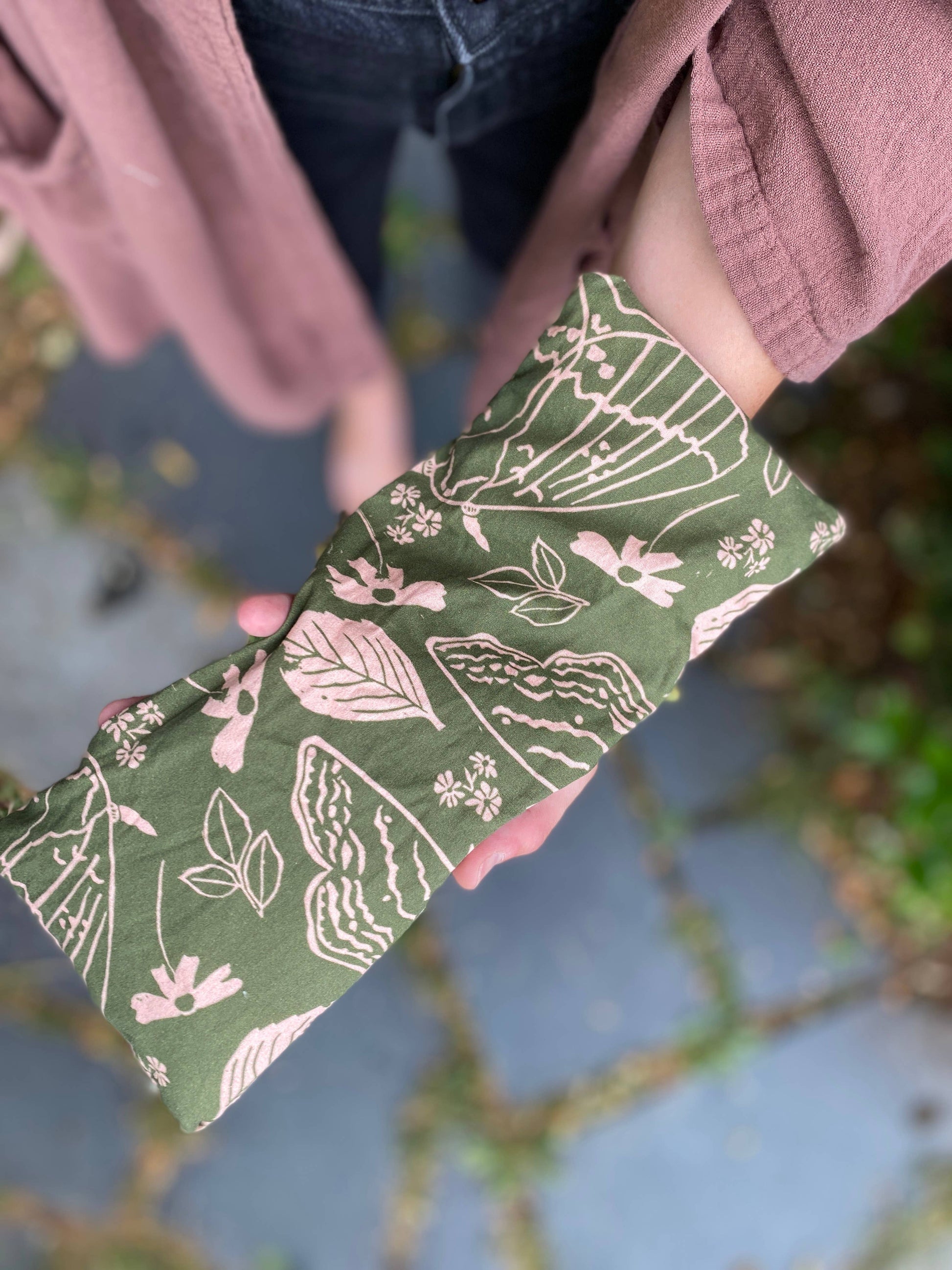 One pound of a 50/50 lentil + flax mixture fills this eye pillow in its own cotton bag. The outside removable cover is sewn in smooth cotton sateen in one of four patterns using french seams meaning no fraying and easy washability.