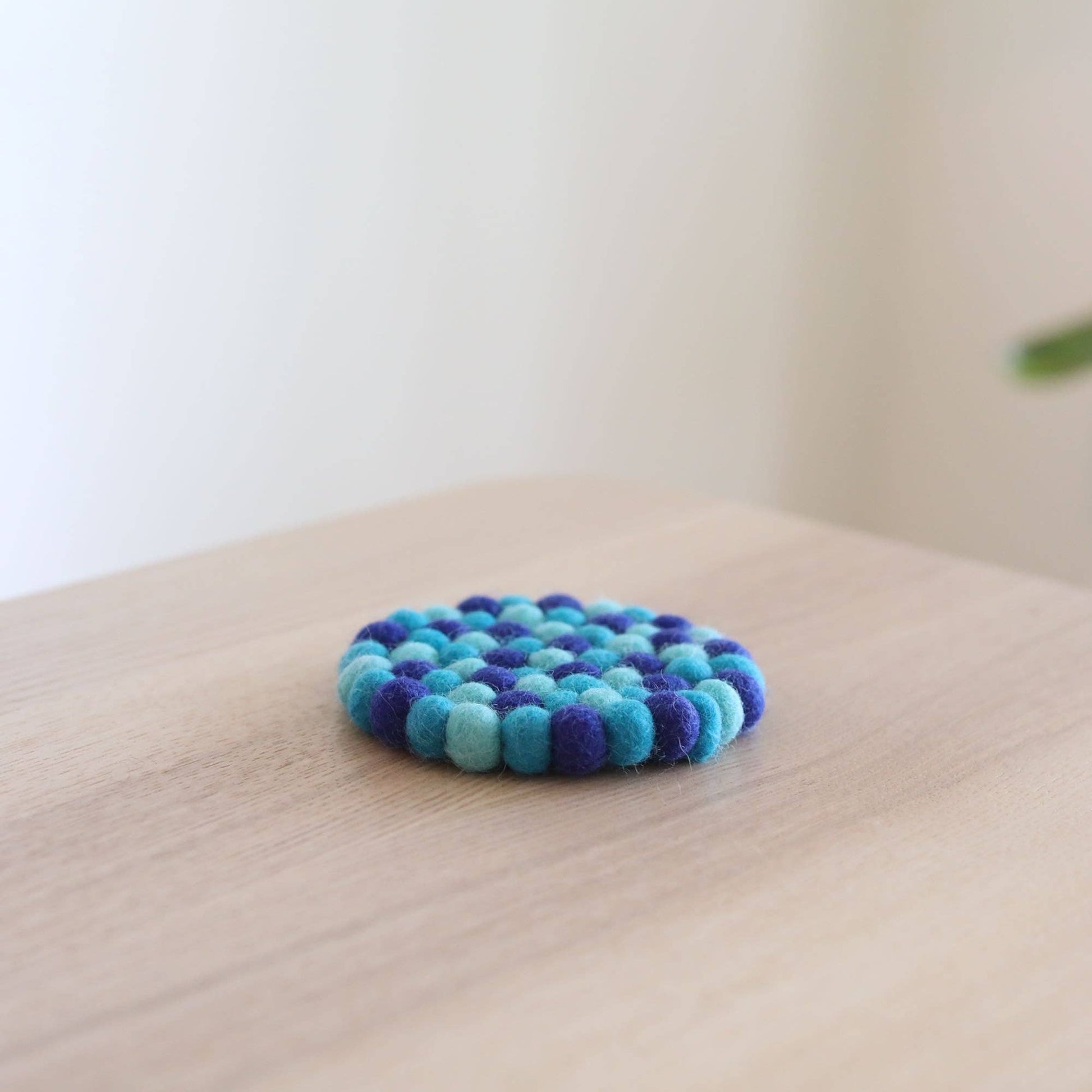 Home - Wool Felt Round Coasters - Ocean Blue & Gray - Set of 4