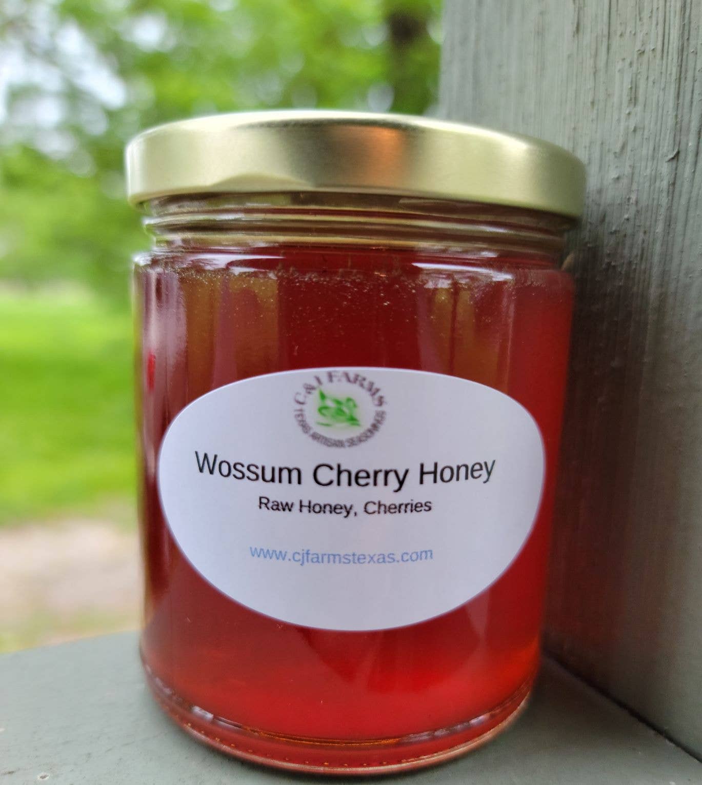 C&J Farms has taken their pure, raw North Texas honey and carefully infused it with a true sweet cherry. This Wossum Cherry honey evokes summertime with its sweet and intense aroma, making it the must-have honey of the season! Not only do cherries have a great taste, they are also rich with a number of vitamins and nutrients that make them one of the healthiest summer fruits! Use on your baked ham, in the crockpot with pork chops, drizzled over pastries or ice cream, it’s even delicious in a shot of whisky!